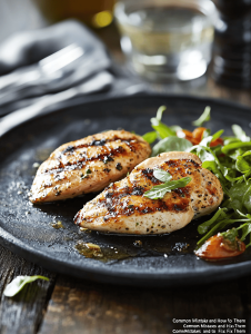 • Overcooking leading to dryness.? IF THE chicken is dry, don’t cook it beyond 74°C (165°F).